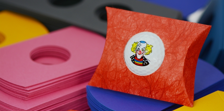 Am Anfang stand der Wunsch nach einer Verpackung, die zwar den Golfball irgendwie verpackt, nicht jedoch das Logo.